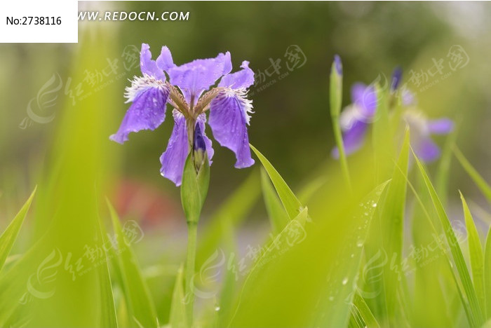 绿草间的紫鸢花