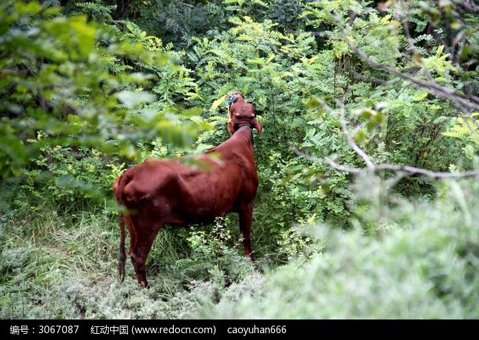 山中吃树叶的老黄牛