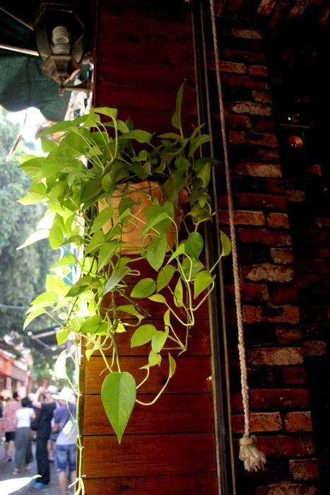门口悬挂的植物吊篮