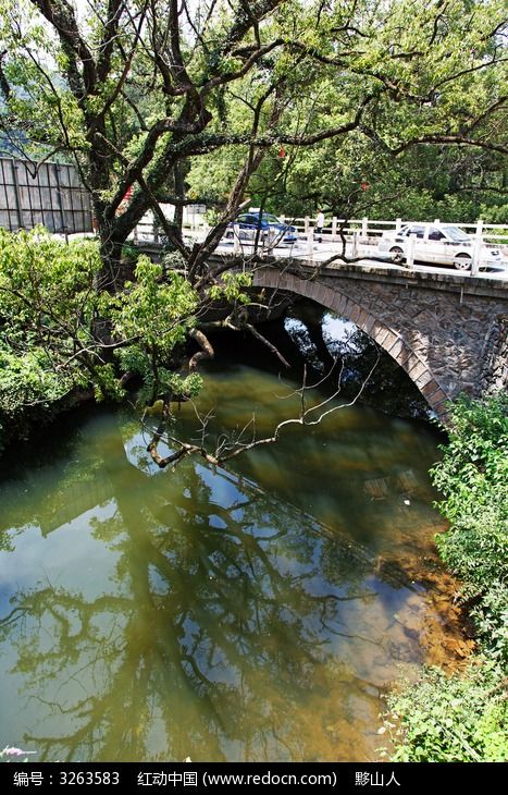 婺源晓起村的水口园林小溪上的石拱桥