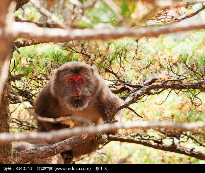 瞪着双眼的黄山短尾猴