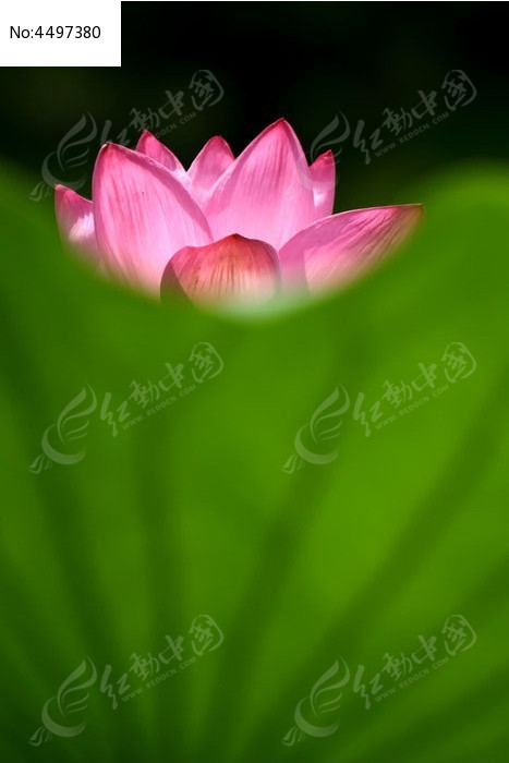 碧绿荷叶上后的红色荷花