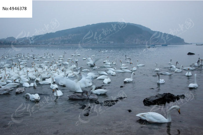 日出前港湾中的天鹅