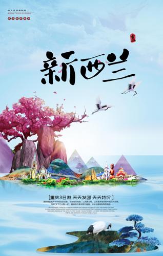 中国风新西兰旅游宣传海报