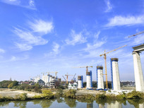 洛阳市龙门石窟连接西山东山的伊阙桥