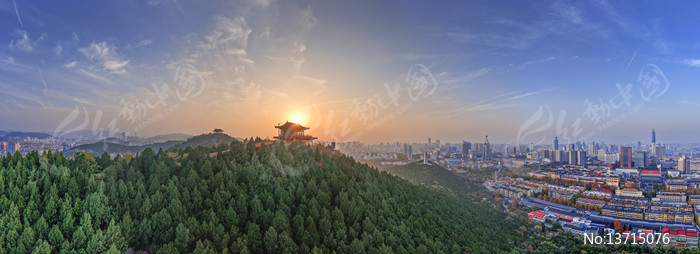 宽幅山林与都市日落美景