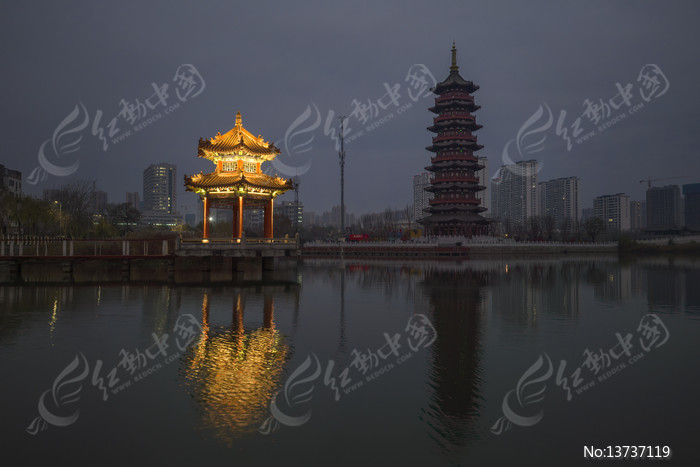 湖畔古建夜景