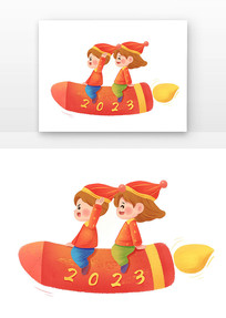 福娃做火箭新年除夕喜庆卡通