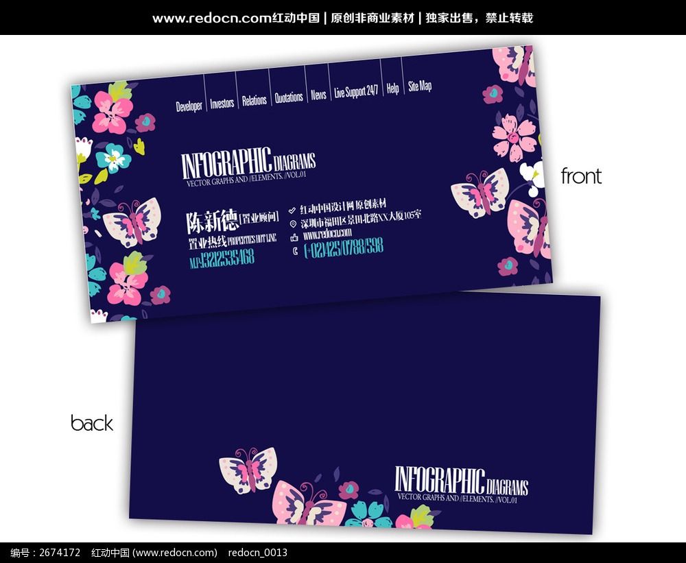 深蓝色花类名片图片下载_红动中国