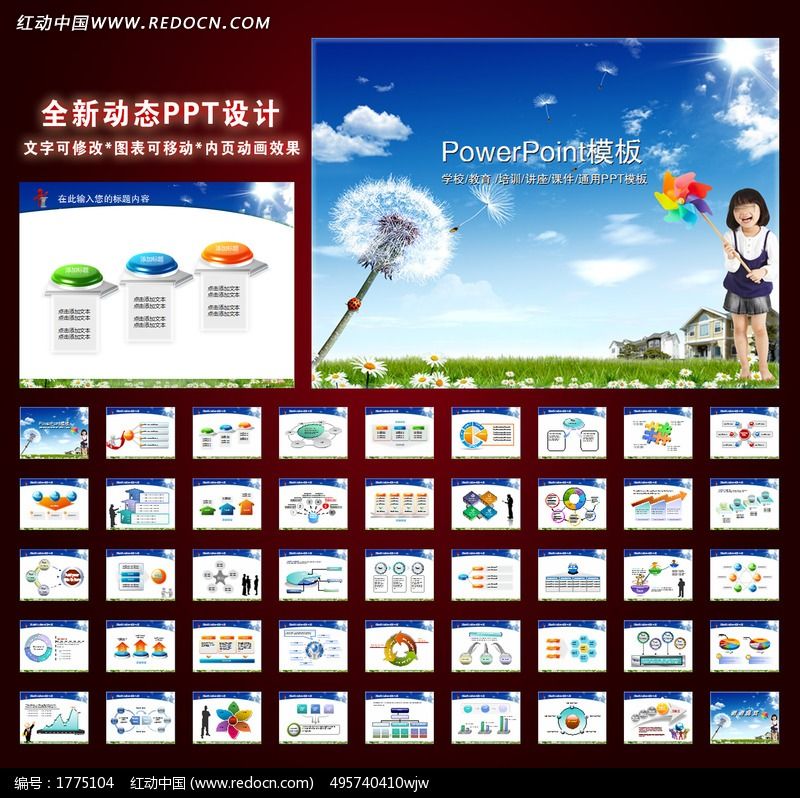 教育学校PPT幻灯片蓝天草地教学课件会议下载_红动中国
