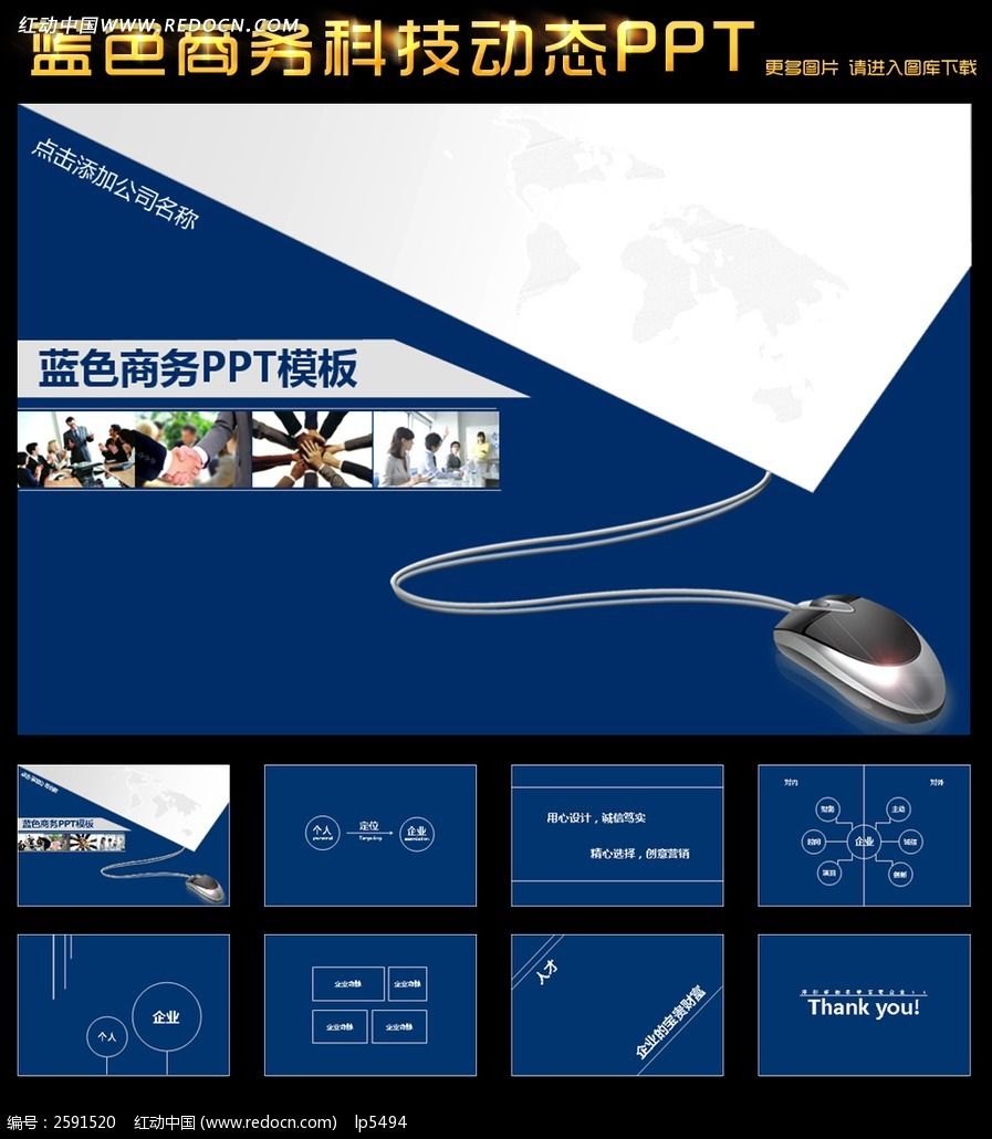 蓝色通用商务科技动态PPT模板下载_红动中国