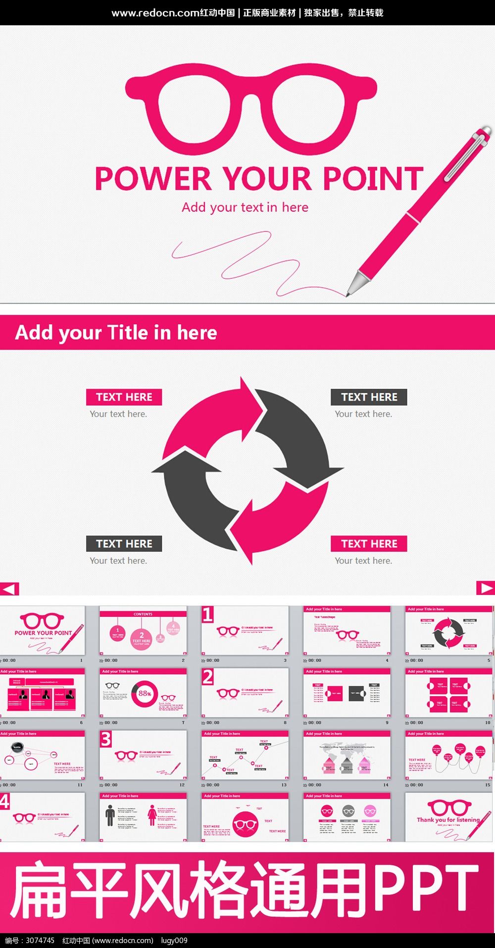 眼镜行业销售业绩报告扁平化动态PPT下载_红动中国