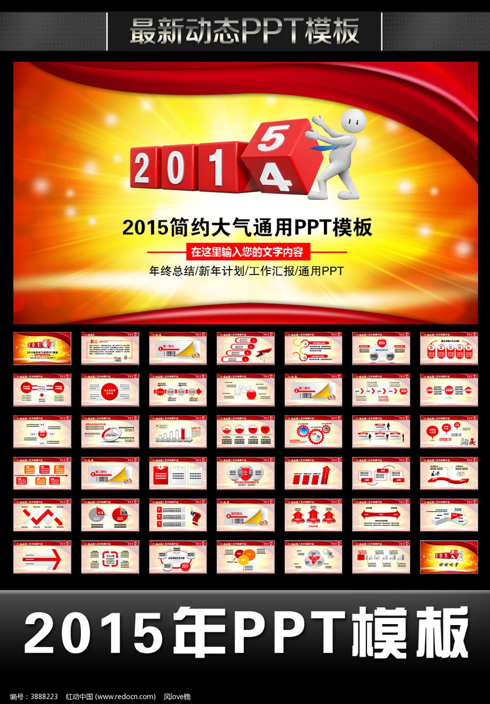 2015红色大气年终总结新年计划PPT下载_红动中国