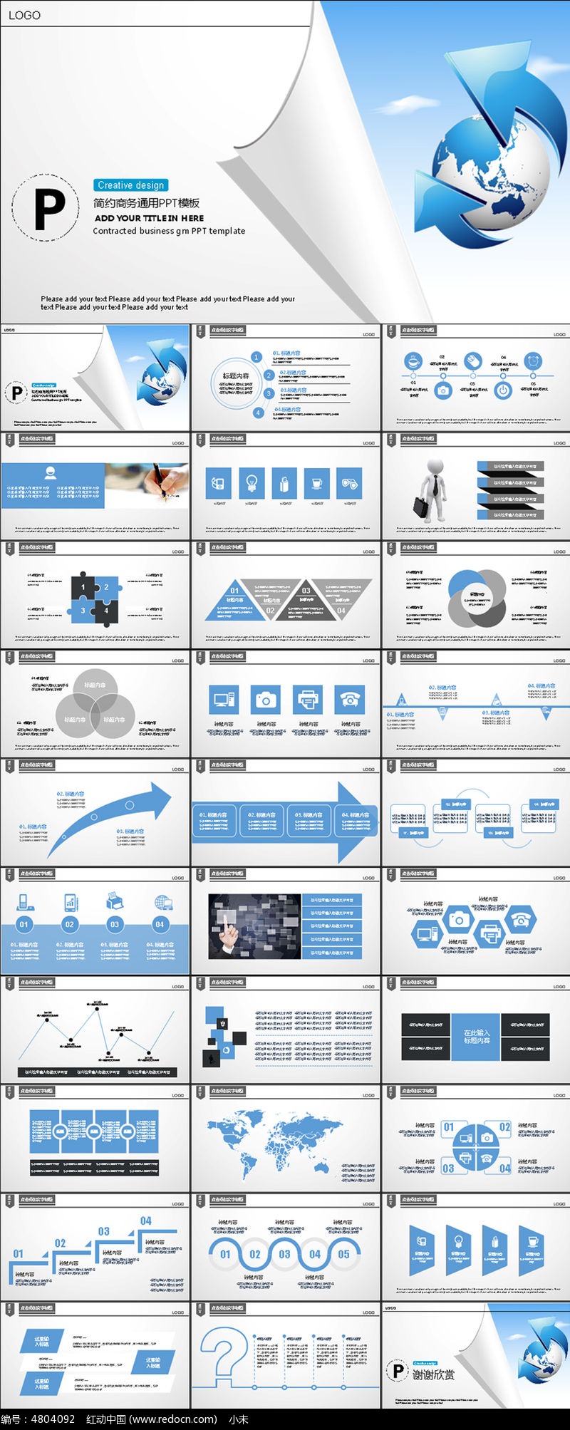 大气蓝色简约商务PPT模板动态PPT下载_红动中国