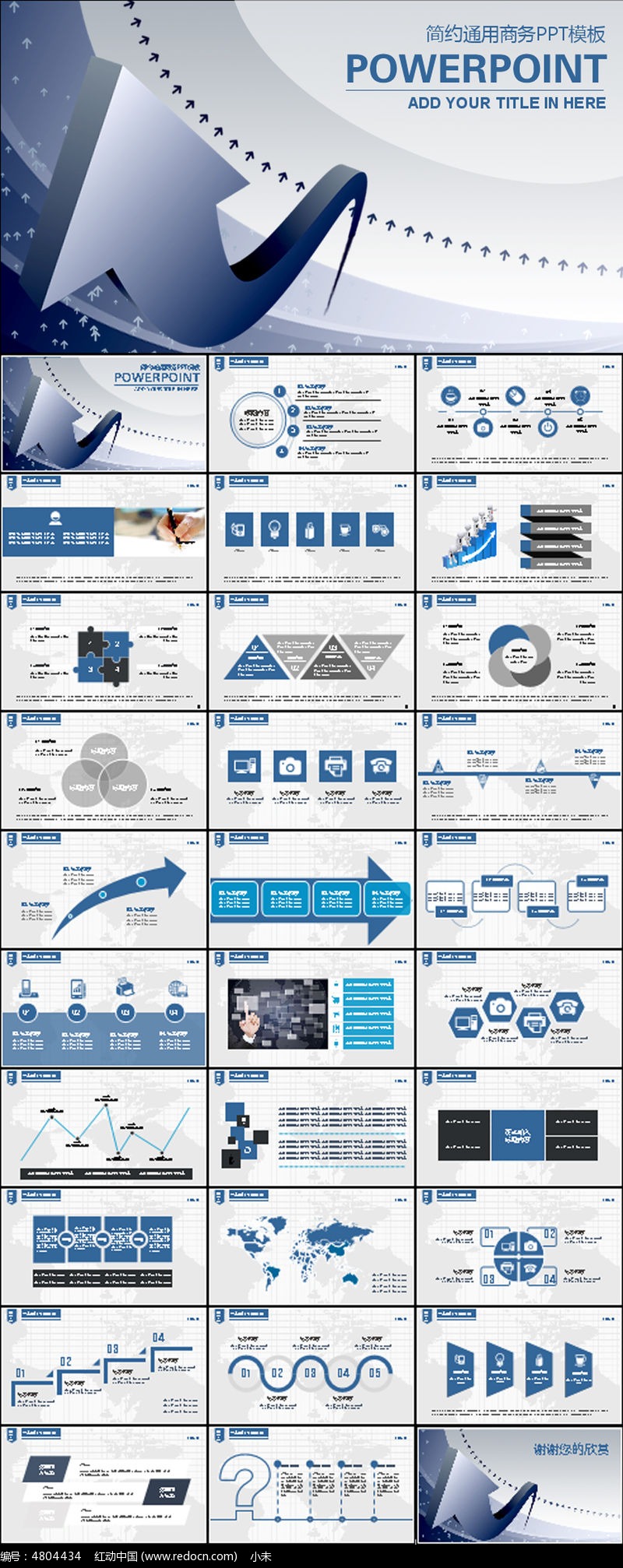 简约蓝色箭头商务动态PPT模板下载_红动中国