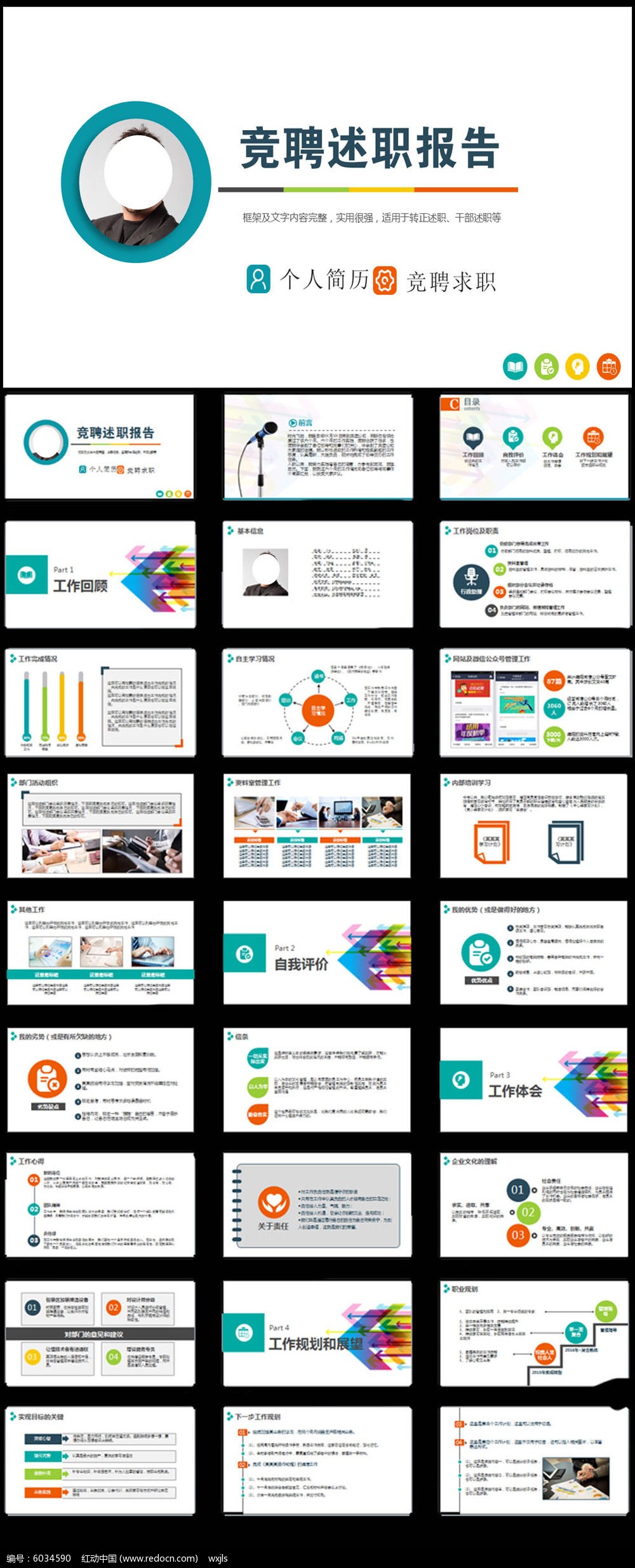 简洁个人简历ppt竞聘下载_红动中国