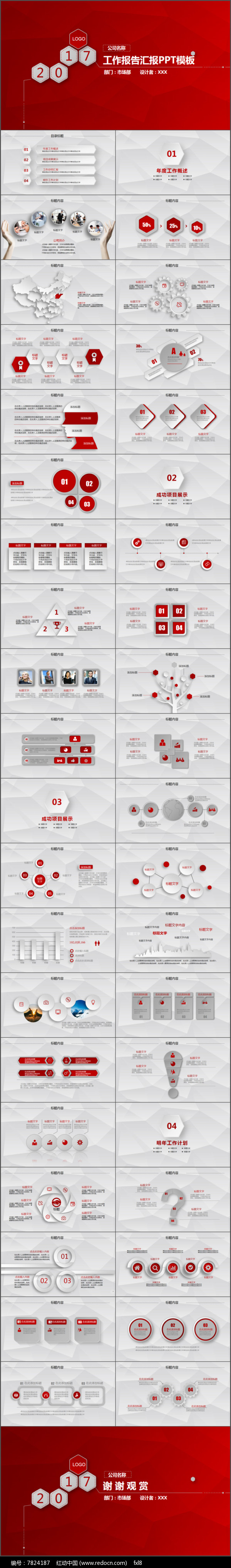 红色大气微立体工作报告汇报PPT下载_红动中国