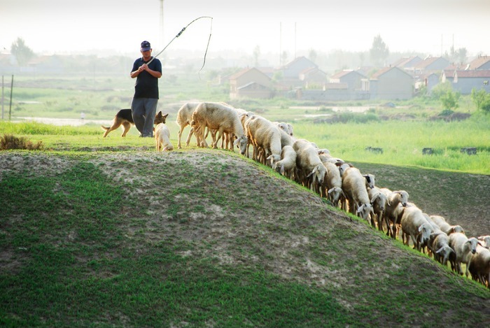 走在大坝上的牧羊人