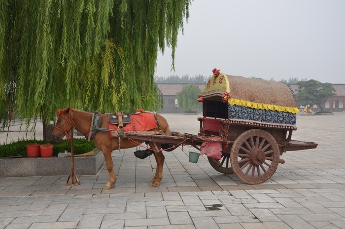 杨家埠景区供游客拍摄的马车