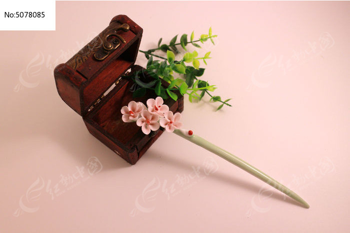 首饰盒上的红梅陶瓷发簪