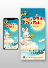 原创桂花枝下中秋月饼国庆共贺节日手机海报