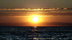 海洋上的日落明亮的橙色天空和云彩风景风光