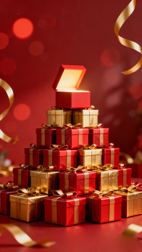 春节新年中国红烟花烟火祥云抽象渐变海报