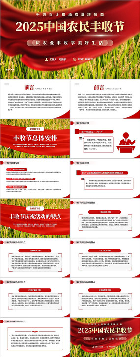 稻田水稻大米农业丰收PPT模板新农村扶贫