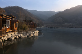 休宁县五城镇龙湾村率水河周边村镇航拍风景