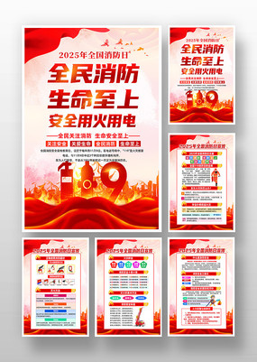 2025年119全国消防日宣传月挂画设计