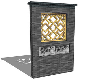 中式庭院砖雕浮雕图案景观墙照壁SU模型