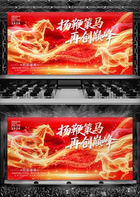 大气2026马年年会展板年会背景舞台背景