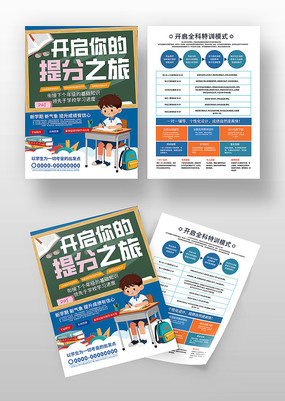 蓝绿色插画风教育培训辅导班招生宣传海报