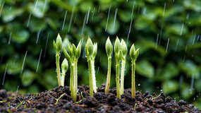 微光中的嫩叶在幽静的森林中勇敢地生长