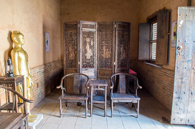 嫩绿古风水墨人物女子站在桌子边书写画画