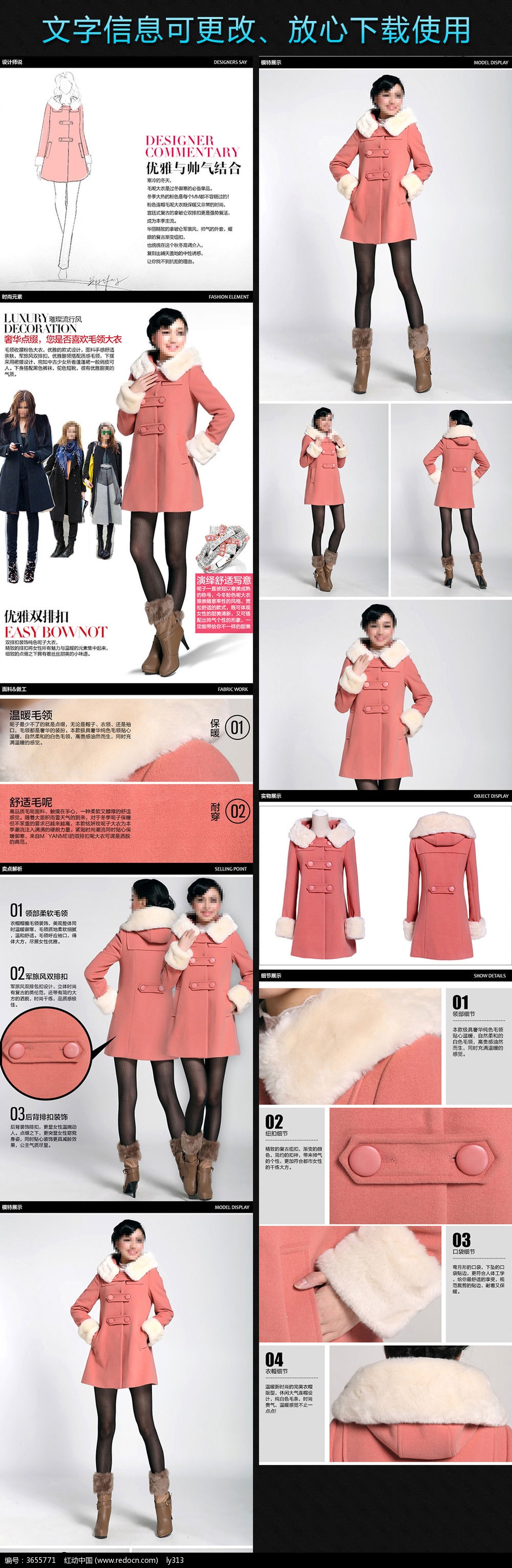 淘宝女装大衣新款详情页PSD素材摸板_红动中国