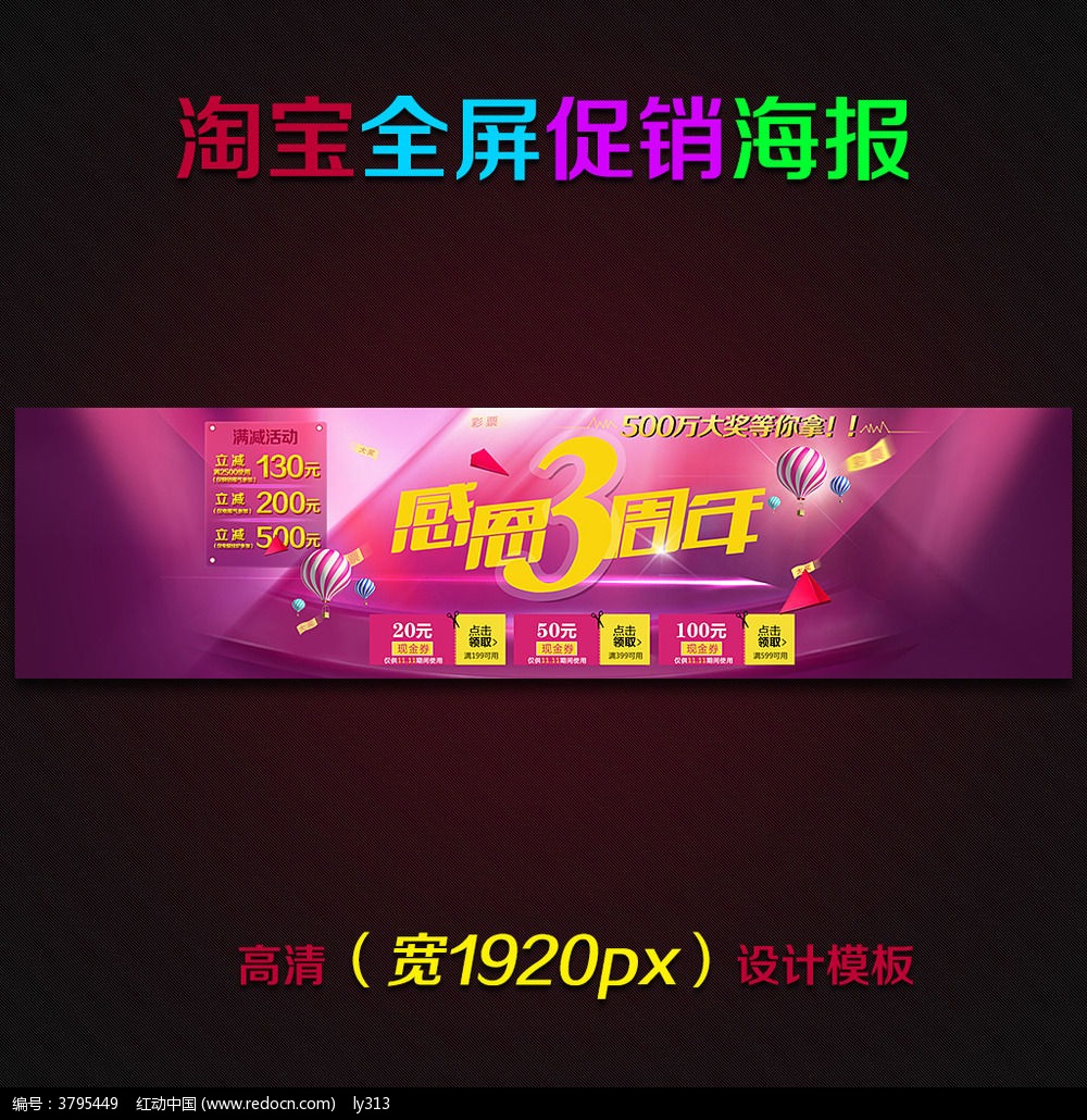 淘宝女装周年庆全屏海报素材模板_红动中国