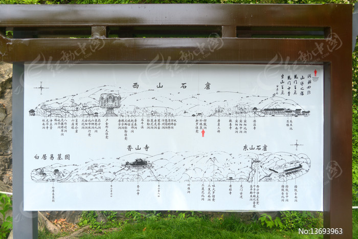 洛阳龙门石窟信息栏旅游导览图