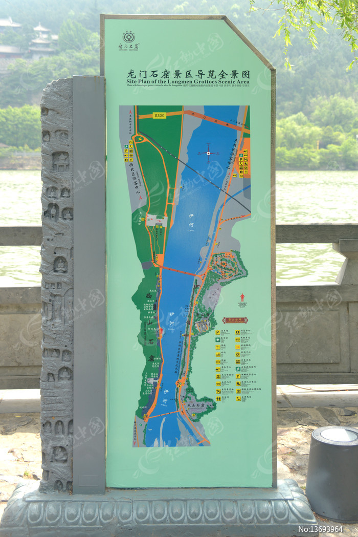 洛阳龙门石窟信息栏旅游导游图