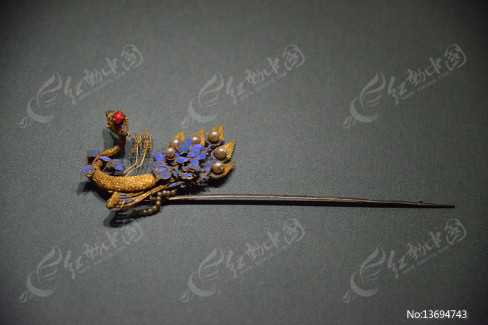 清代点翠嵌宝鎏金银凤簪