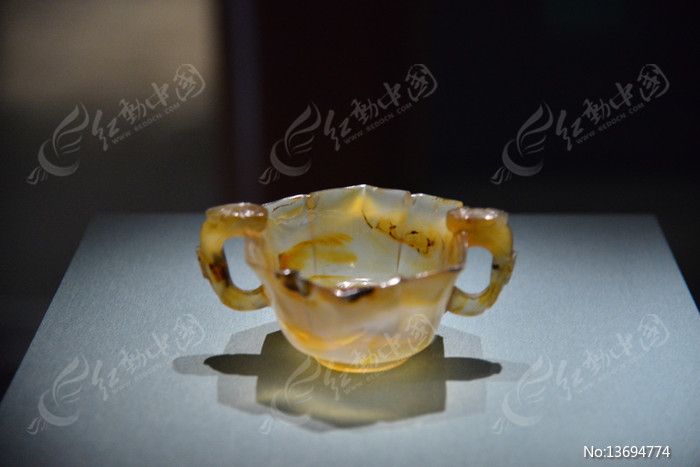 清代 卷云耳玛瑙杯