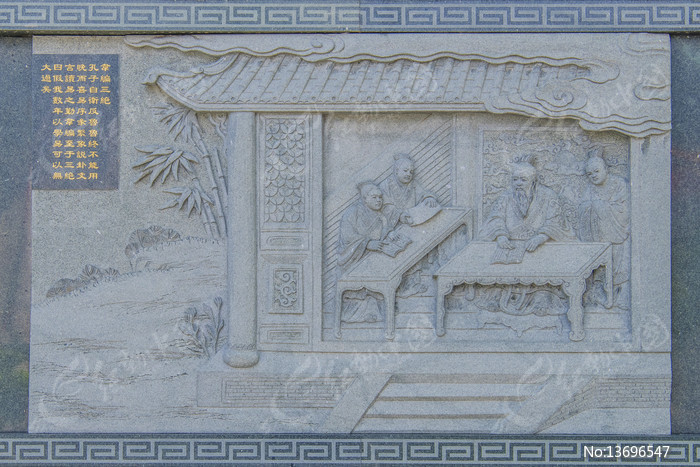 孔子圣迹图韦编三绝壁雕画