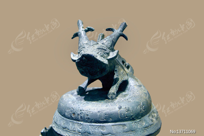 蟠龙盖羊首兽面纹铜罍蟠龙特写
