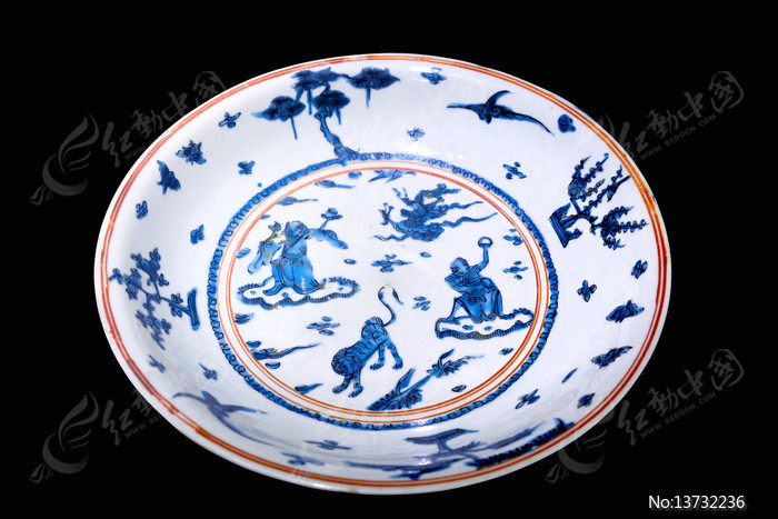 福建博物院藏明代红绿彩降龙伏虎纹大盘