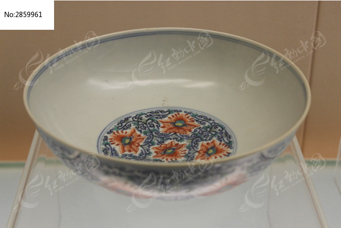 青花红花花卉圆形瓷碗