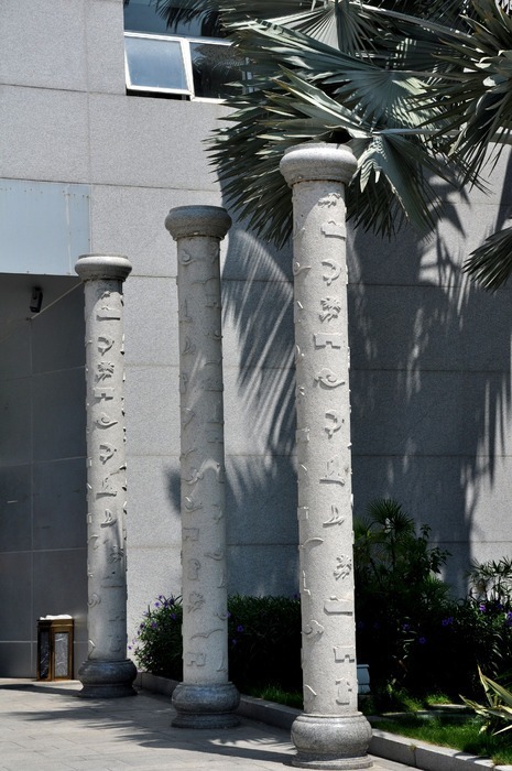 门口的三个大理石雕刻柱子