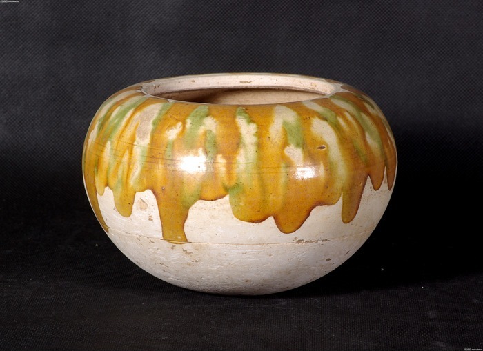 陶瓷黄色釉彩瓷盆