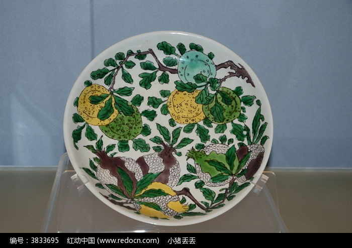 景德镇窑素三彩花果纹盘