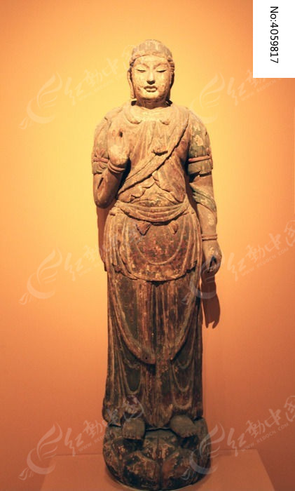 彩绘木雕菩萨立像