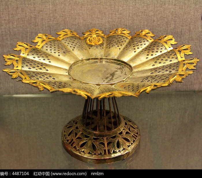镶金边镂空高足银盘